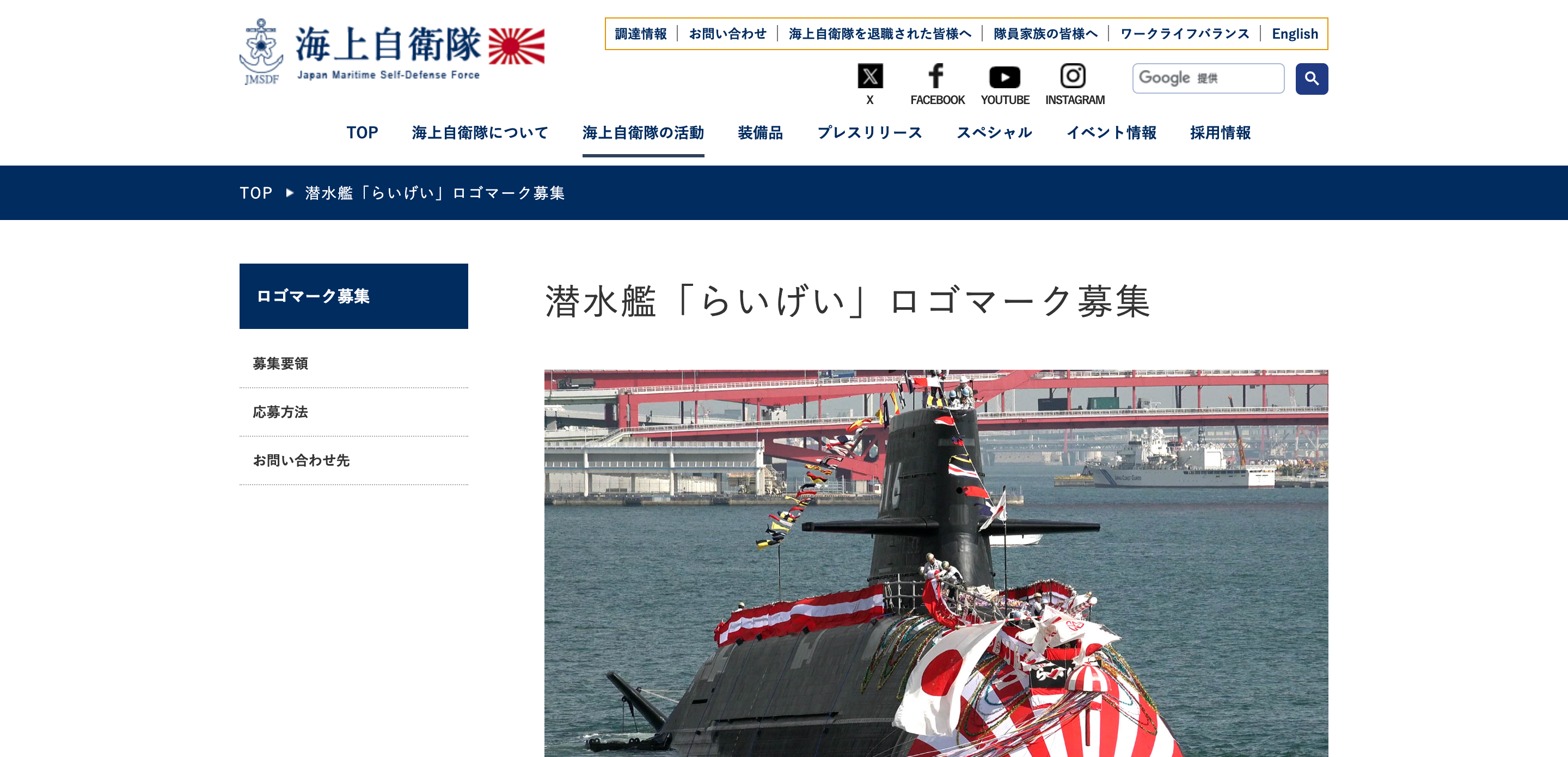 潜水艦「らいげい」ロゴマーク募集 2024年6月30日締切- 公募データベース。