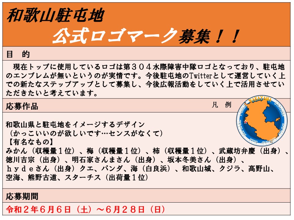 和歌山駐屯地 公式ロゴマーク募集自衛隊インフォメーション陸自調査団。