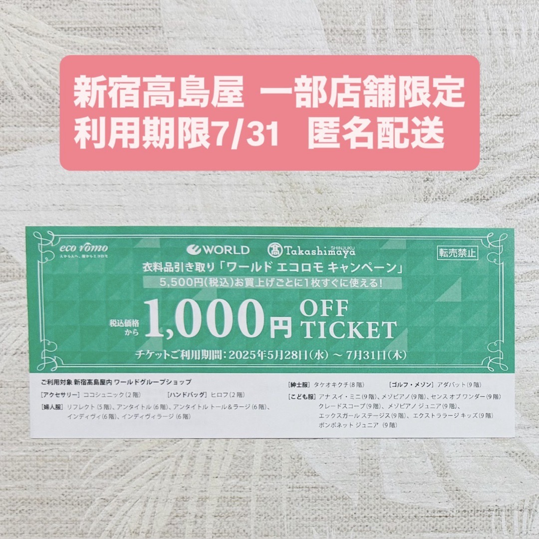 新宿高島屋 ワールド エコロモキャンペーン 1,000円オフチケット - メルカリ。