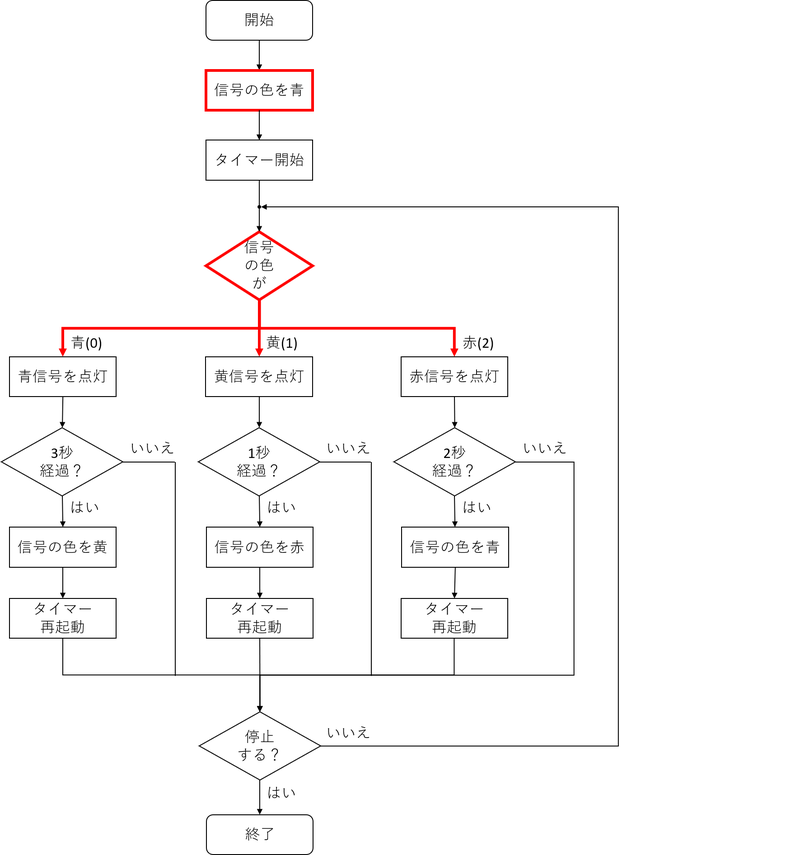 信号機を作ってみよう フローチャートとプログラミングSPACEBLOCK® スペースブロック。