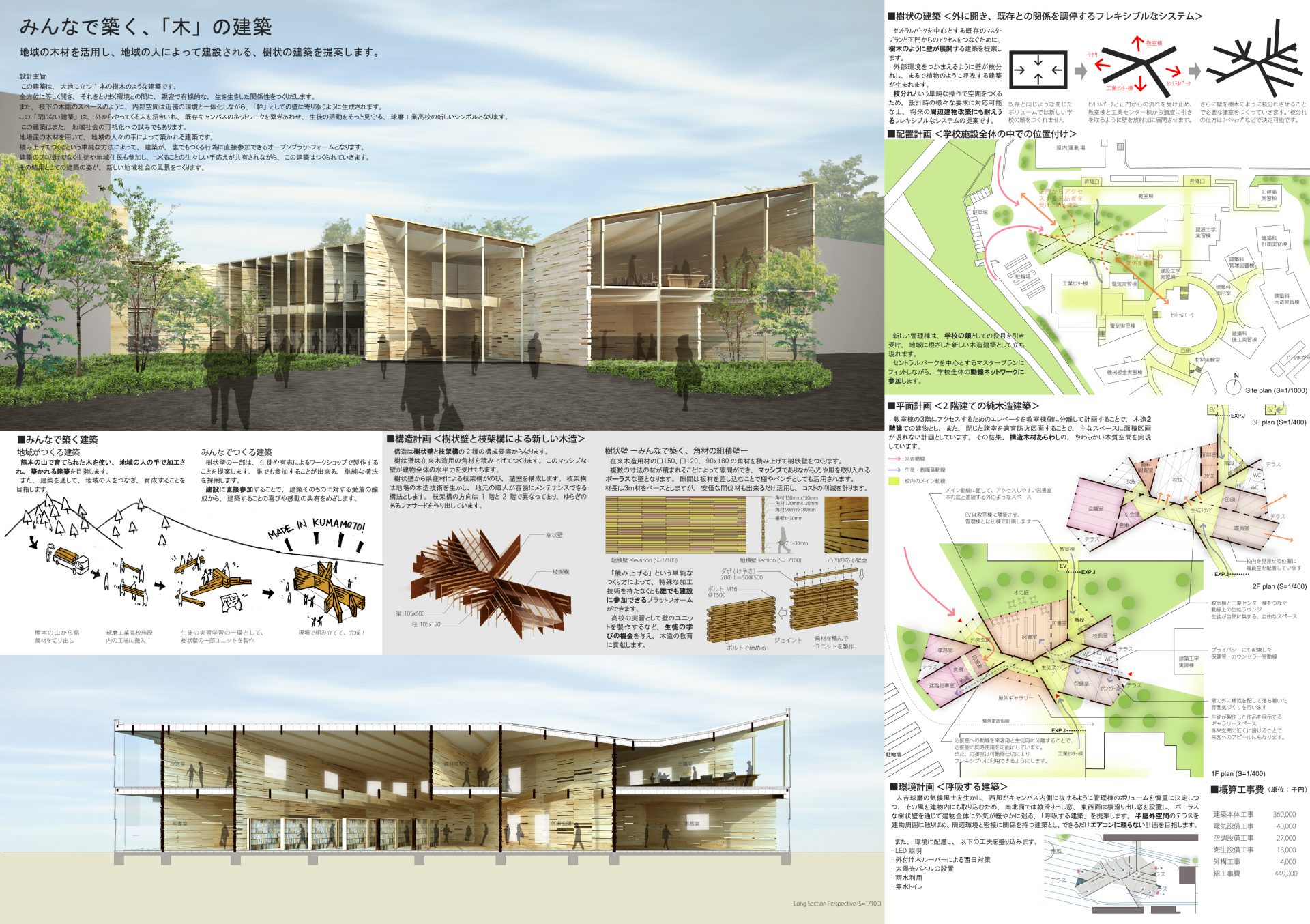 笑いあり、緊張ありのプロポーザルコンペ 自力建設2018: 岐阜県立森林文化アカデミ。