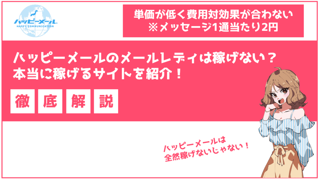 ハッピーメールでメールレディはできる?安全性と稼ぎ方を調べてみた ハピメでメルレ?- 黄金のお小遣い稼ぎ。