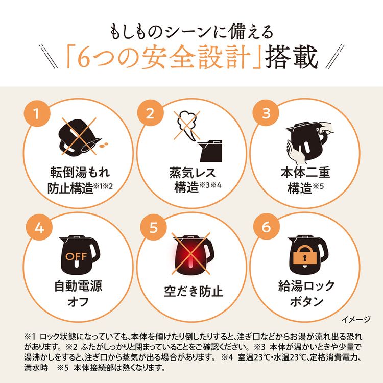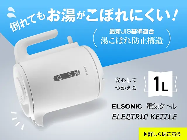 倒れてもこぼれにくい"は、もう電気ケトルの新常識。新安全基準に適合したELSONICの電気ケトル。
