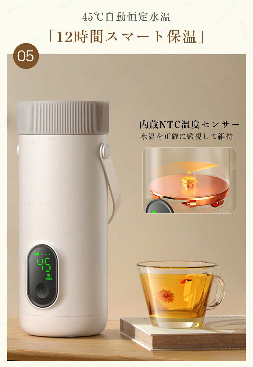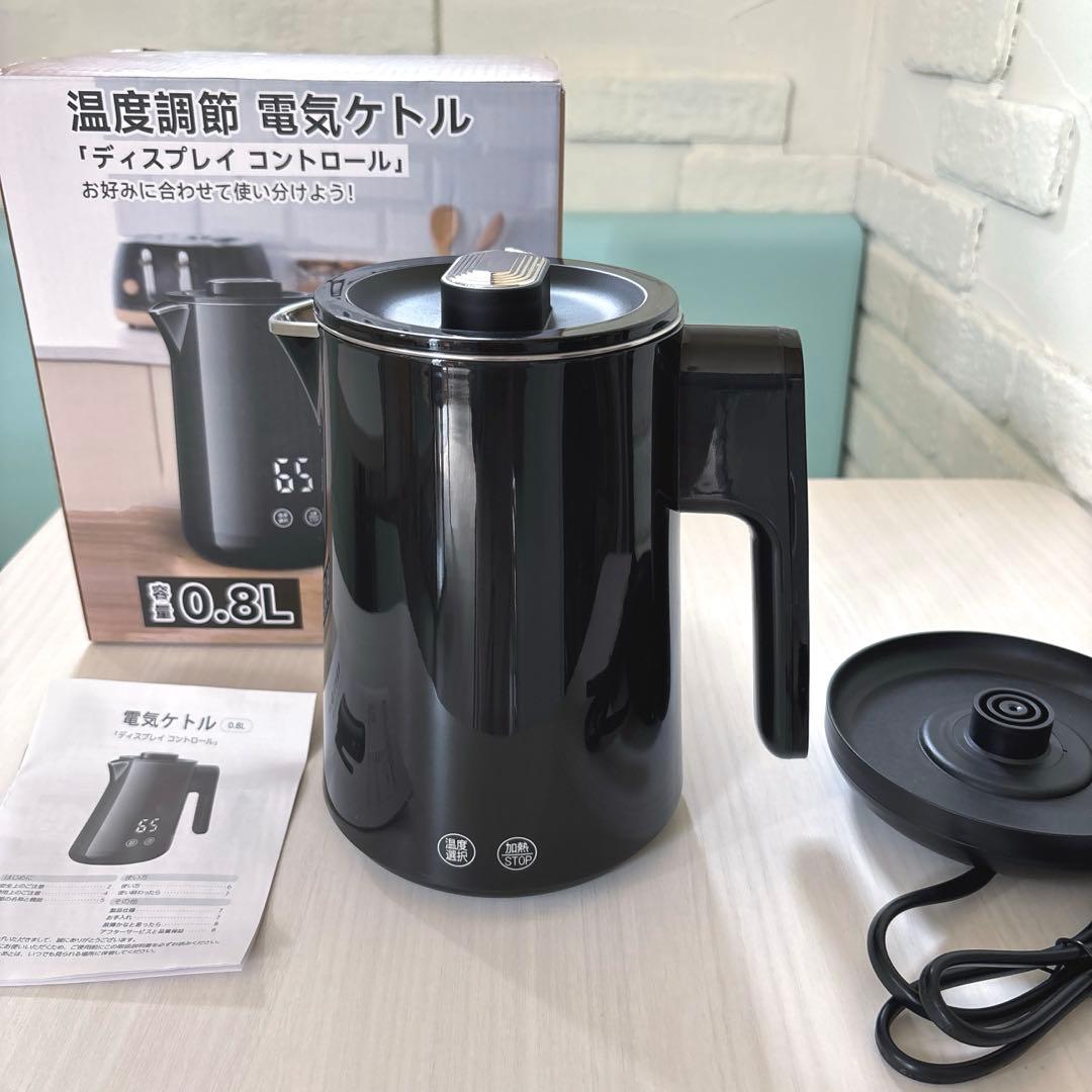 電気ケトル 0.8L 6段階温度調節 二重構造 触れても熱くない。