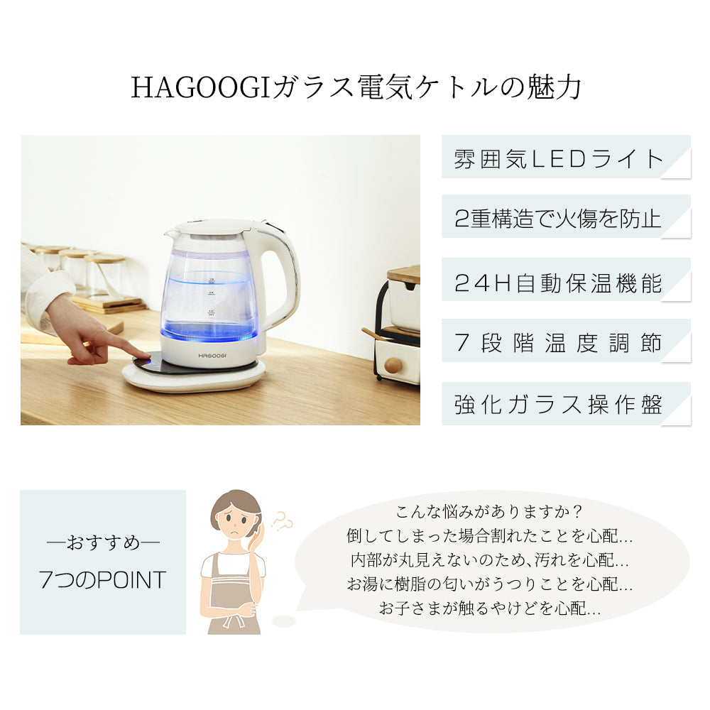 HAGOOGI クーポンで5,083円 1年保証 HAGOOGI 電気ケトル ガラス 二重構造 温度調節 火傷防止 1L 電気ポット小型 湯沸かし器900W 軽量ポット ギフト 御歳暮 : HAGOOGI公式ショップ - 通販 - Yahoo!ショッピング。