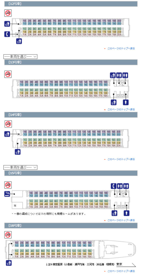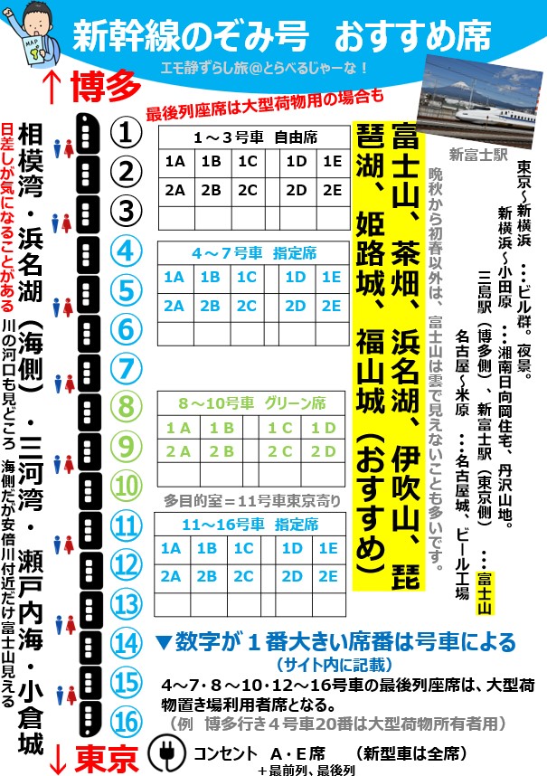 図解1発 新幹線のぞみ号の座席表、おすすめの席!とらべるじゃーな! 穴場 いやし旅。