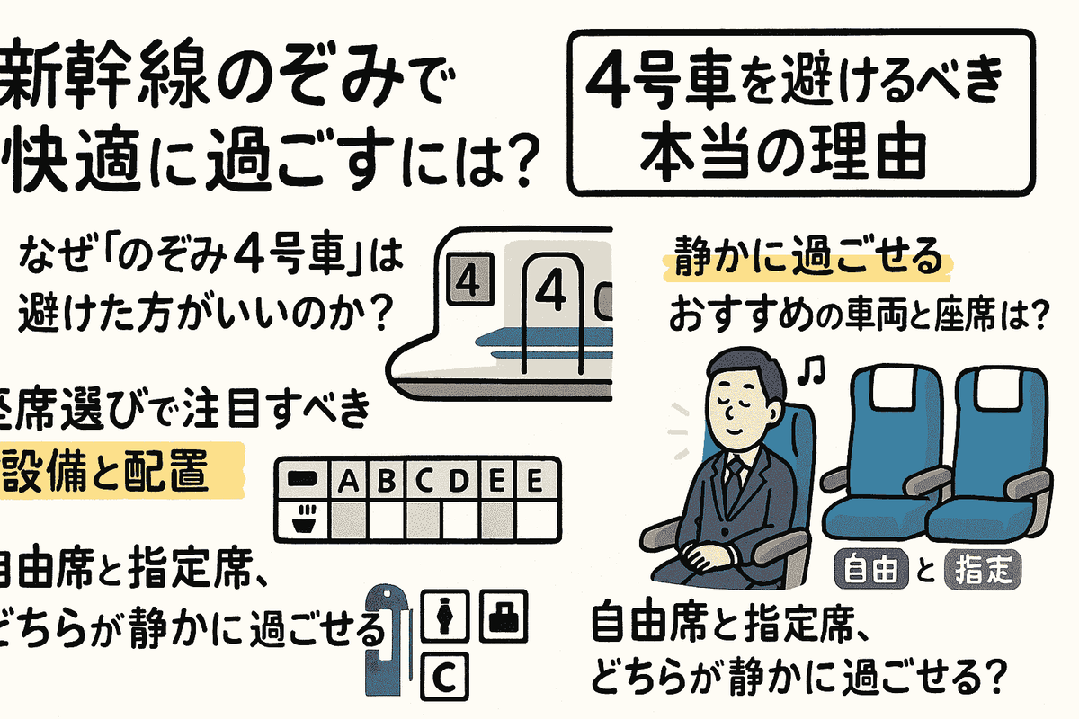 新幹線のぞみで快適に過ごすには?4号車を避けるべき本当の理由 - oyakudachi's diary。