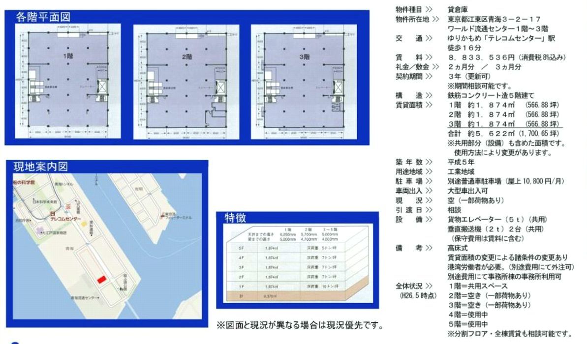 東京都江東区青海3-2-17 テレコムセンター駅 ワールド流通センター 1-3階部分 の貸し倉庫・貸し工場 詳細ページ東京貸倉庫.com 128。