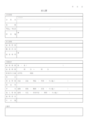 求人票のテンプレート・Word無料のビジネス書式テンプレート。