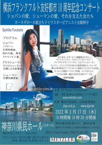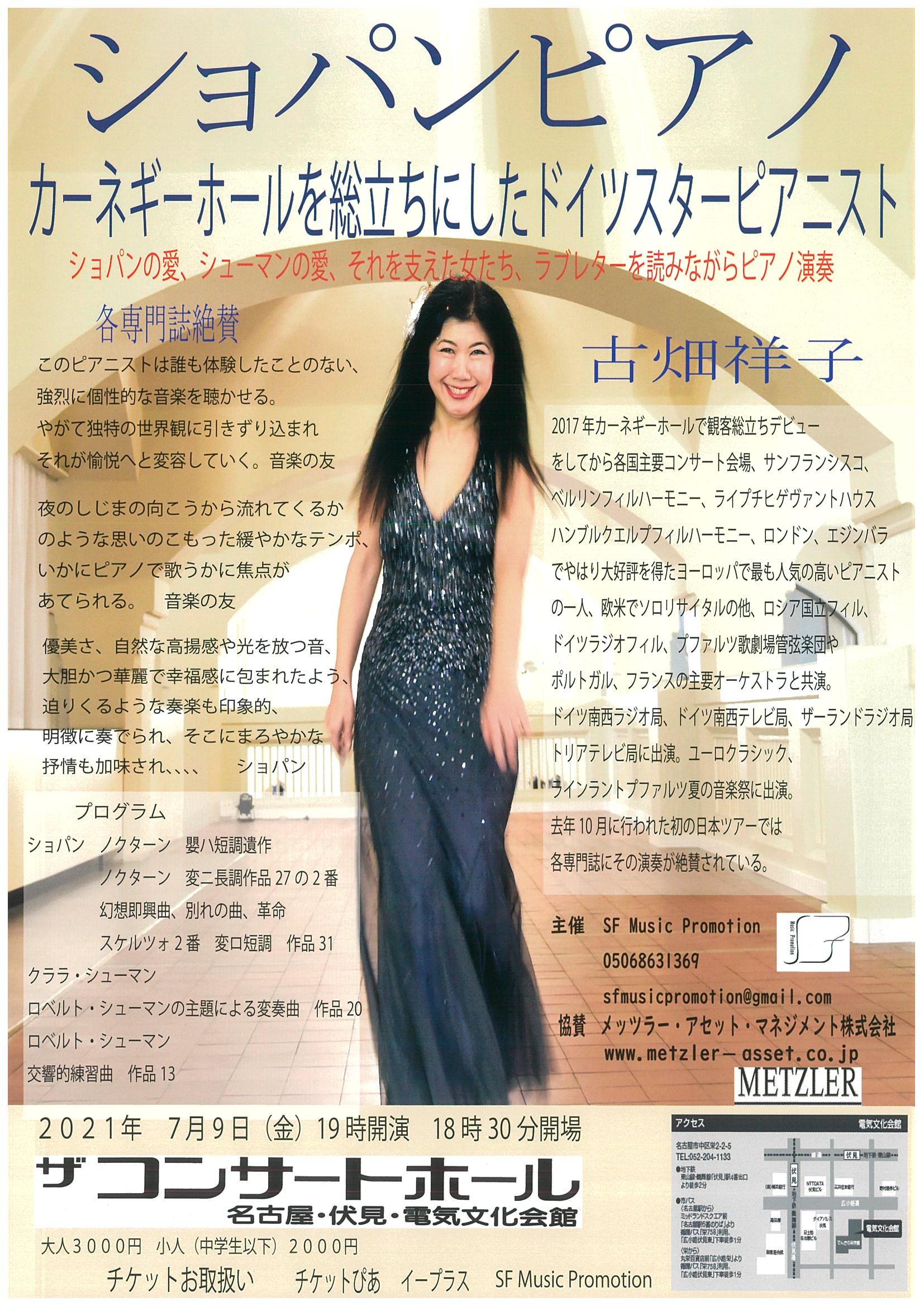 ショパンピアノ カーネギーホールを総立ちにしたドイツスターピアニスト 古畑祥子ピアノリサイタル~ショパンの愛、シューマンの愛、それを支えた女たち、ラブレターを読みながらピアノ演奏~電気文化会館。