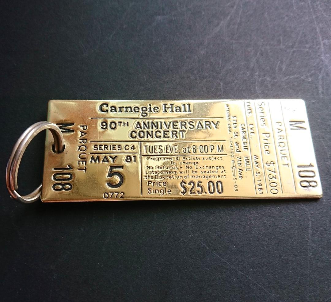 ニューヨーク カーネギーホール 90周年チケット キーリング キーホルダ。