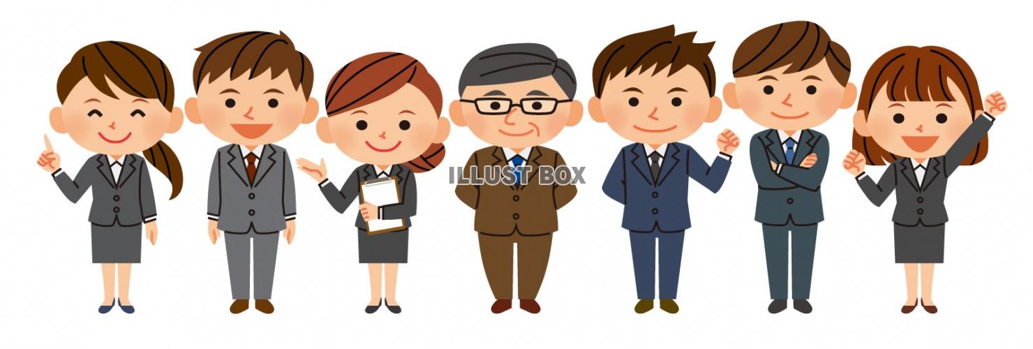 会社員の集合イラスト:イラスト無料。