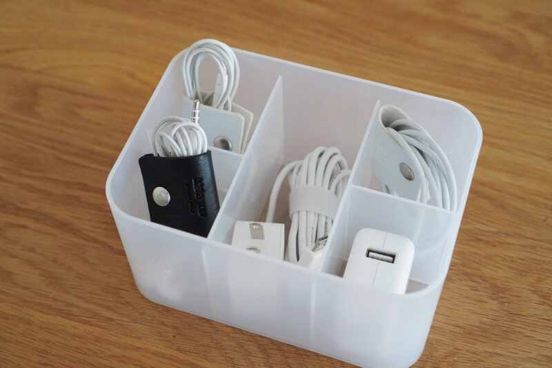充電器やケーブル、コード類の収納アイデア。無印良品や100均での収納方法をブログでレポート。