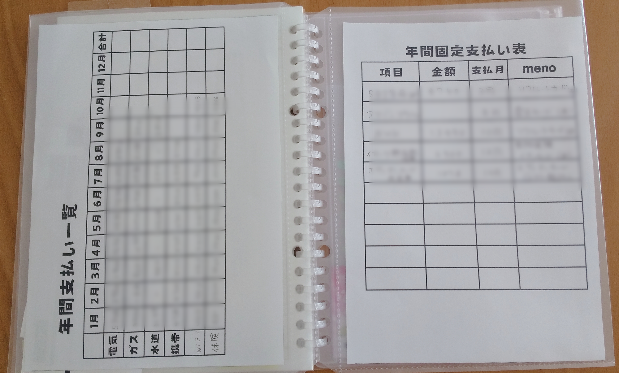 家計簿のまとめは、無印良品のバインダーで。いったりきたり。