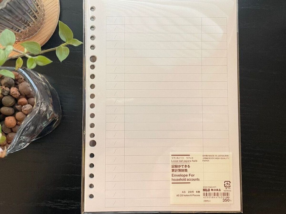 リフィルノート リフィル 記録ができる家計簿封筒無印良品。