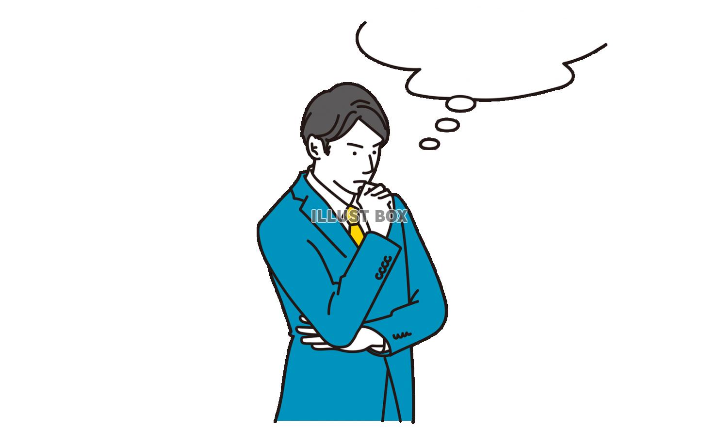 考えるビジネスマン:イラスト無料。