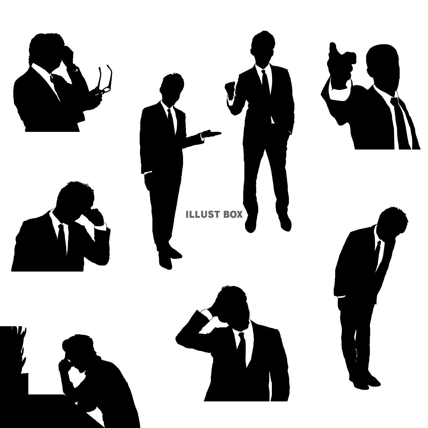 ビジネスマンシルエット_セット1:イラスト無料。