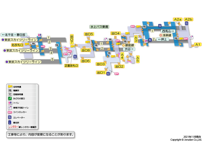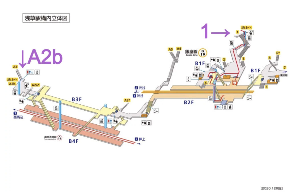 浅草駅のエレベーター出入口はどこにある?えきエレ。