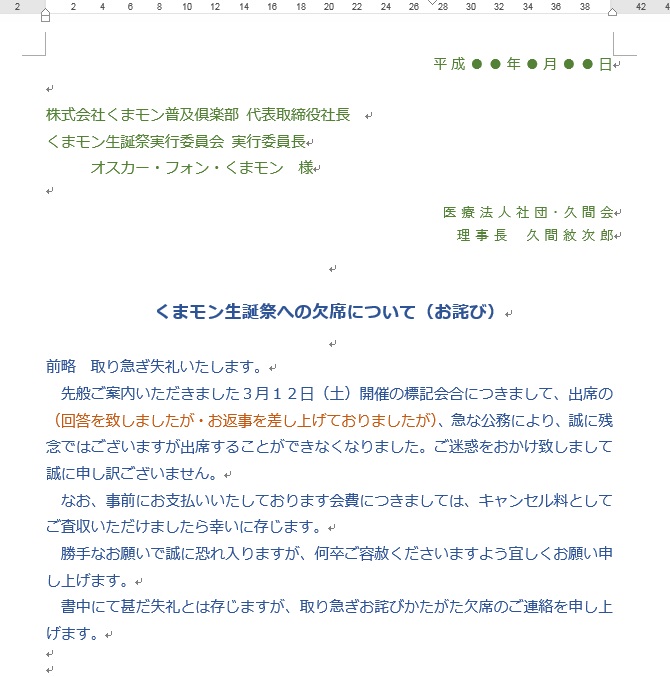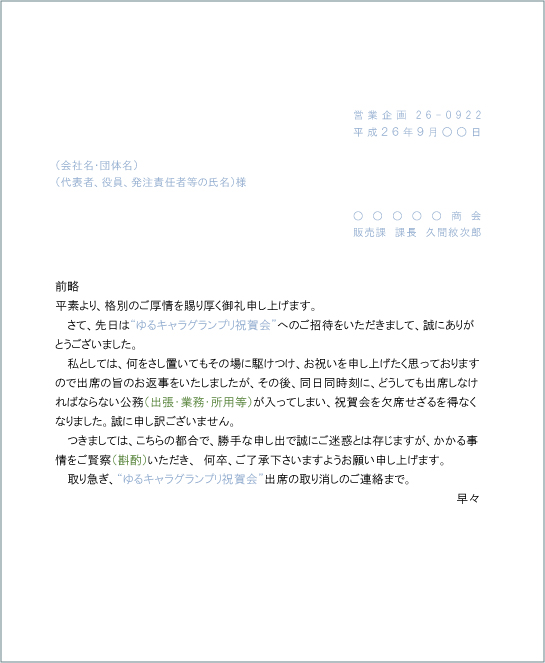 詫び状 お詫び文・欠席・出席キャンセル、社外文書ビジネス文書クリップ。