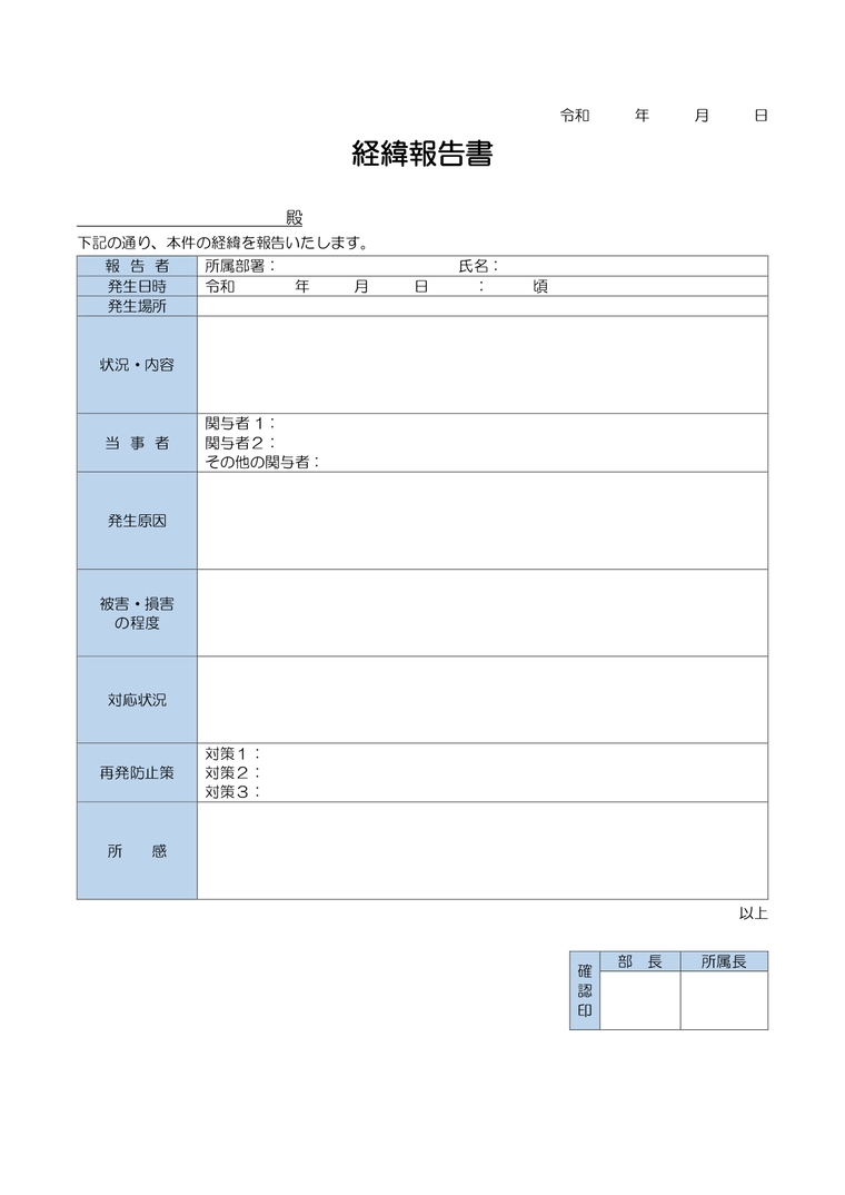 経緯報告書とは?書き方や社内・社外向け 謝罪文 例文、顛末書との違いマネーフォワード クラウド。