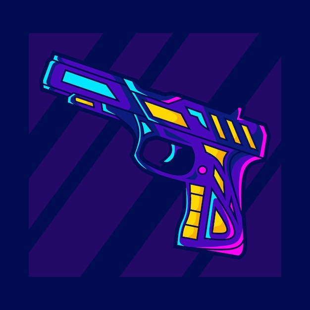 ピストル銃サイバーパンクスタイルの漫画のキャラクターのイラストPremiumベクトル素材。