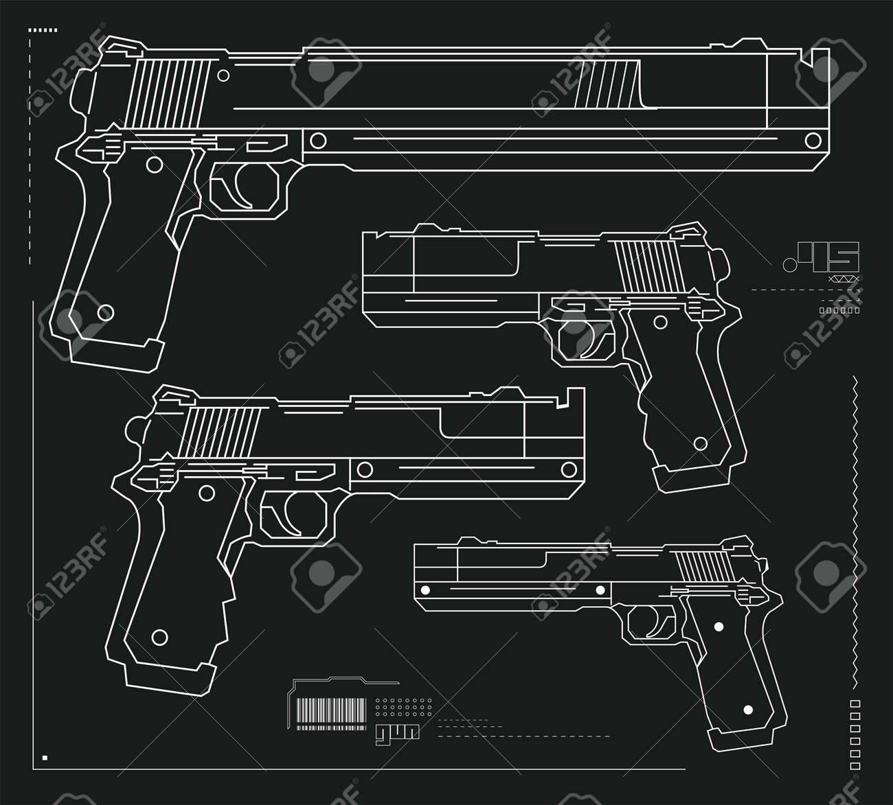拳銃の様々なサイバーパンクスタイルのコンセプトデザイン。のイラスト素材・ベクター Image 188176634。