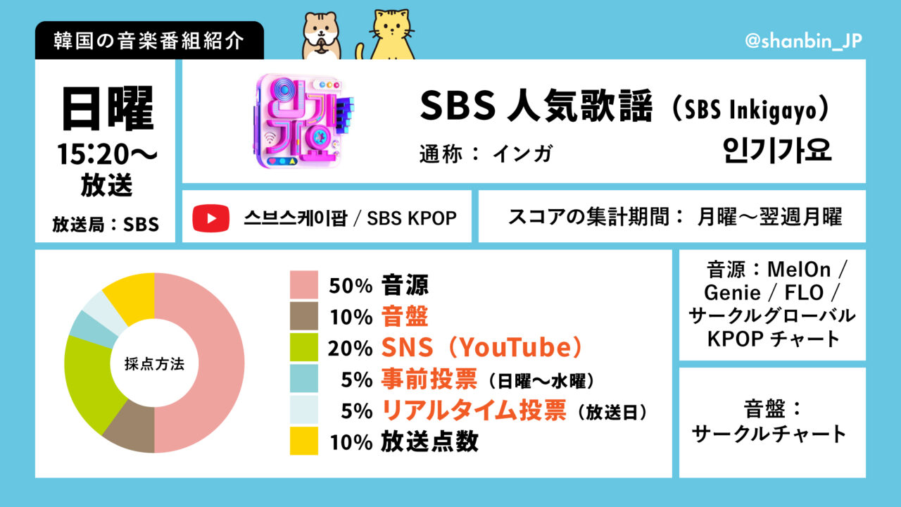 日曜放送「人気歌謡 インガ 」スコア割合や投票について 韓国の音楽番組SUNGHANBIN JP。