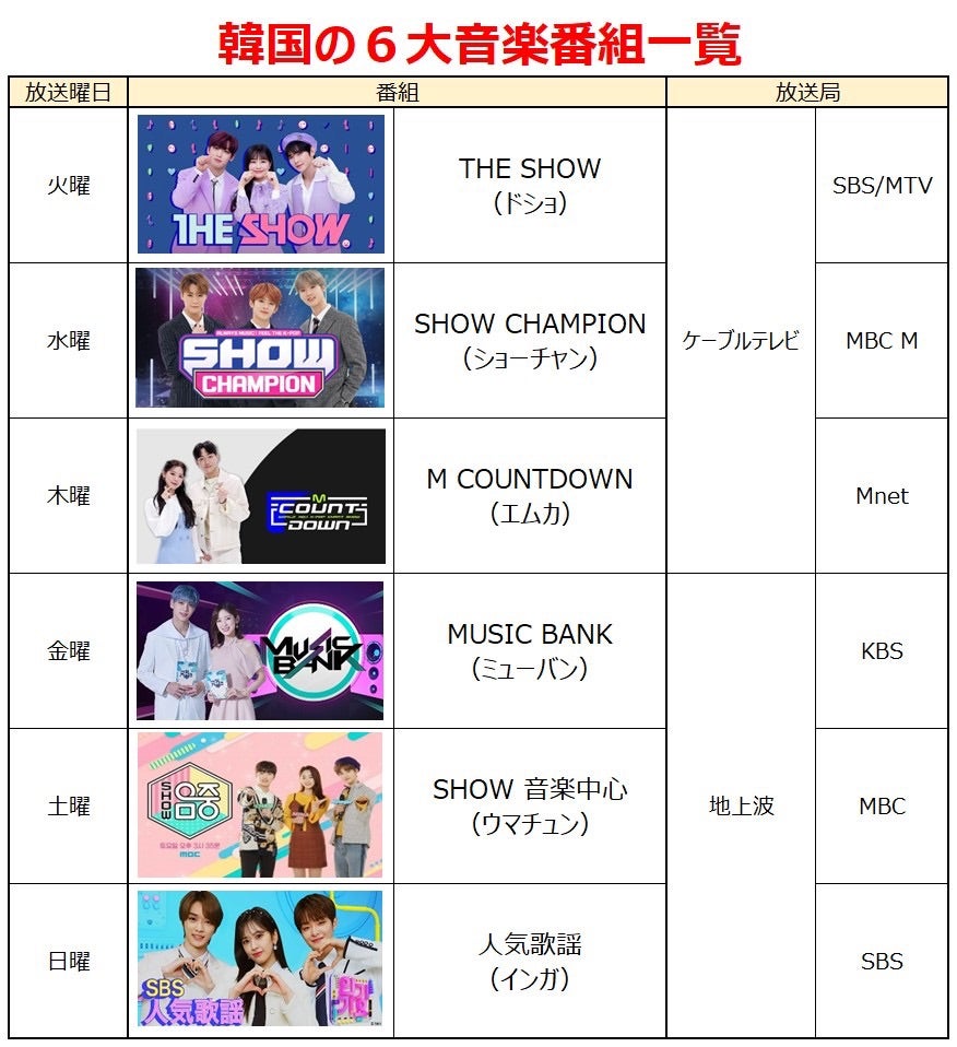 韓国の音楽番組6つを紹介!1位の仕組みも解説!KpopInfoJapan。
