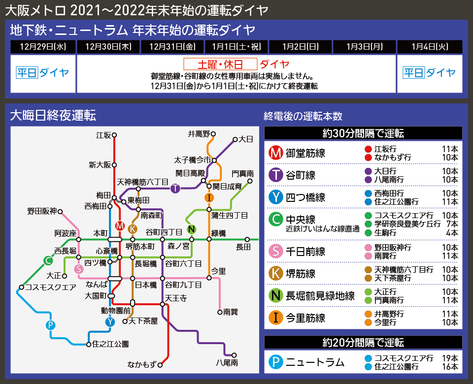 343 大阪・御堂筋線で終電延長の社会実験 2020年1月と2月 東京でもやってみては? - どらったら。