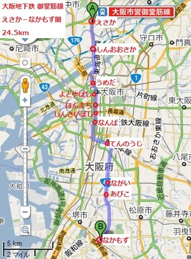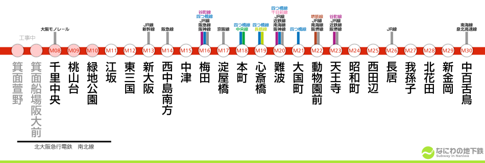なにわの地下鉄路線御堂筋線。