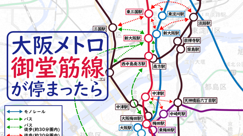 御堂筋線 運転見合わせ時のための、最寄り駅まとめOsaka Metropolis。