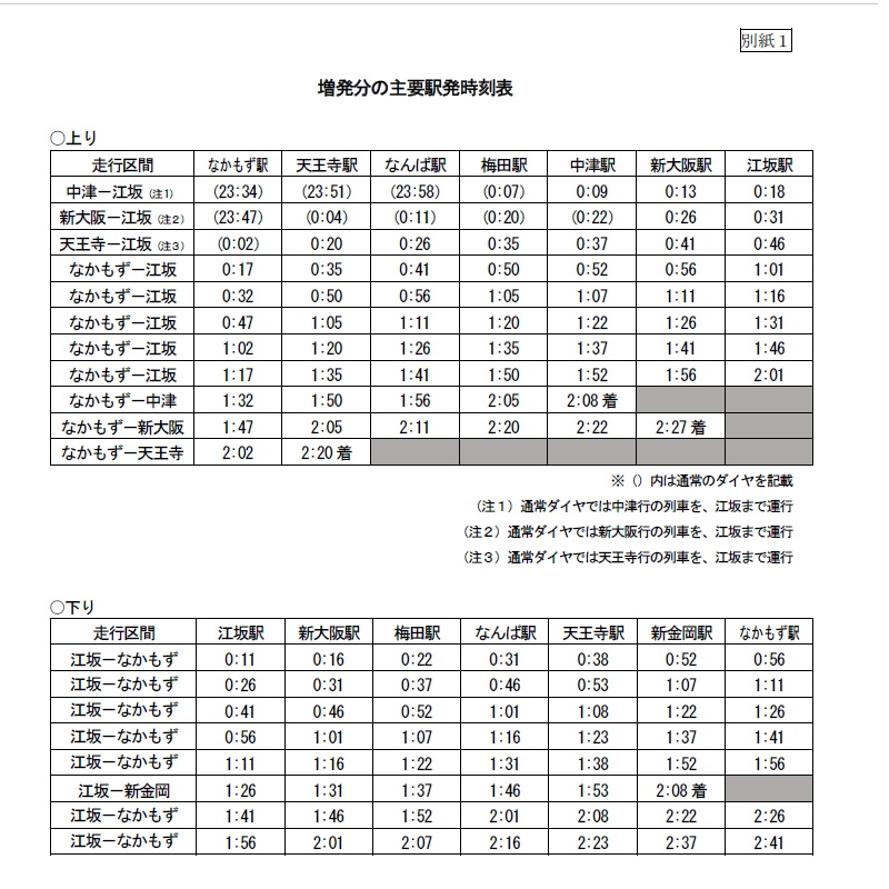 国交省、Osaka Metro 御堂筋線で終電を約2時間延長する実証実験。夜間の消費や人口流動など動向調査 - トラベル Watch。