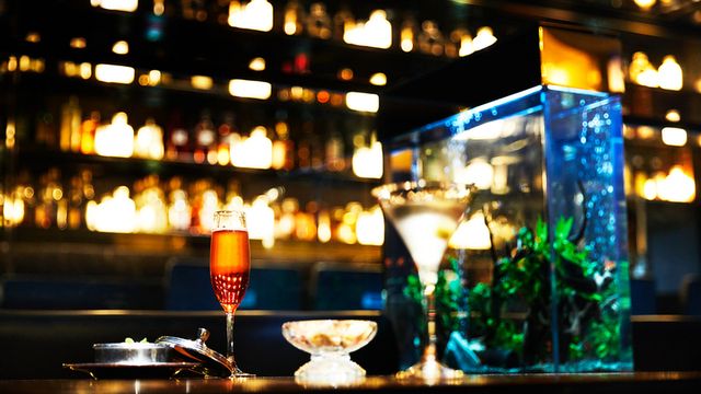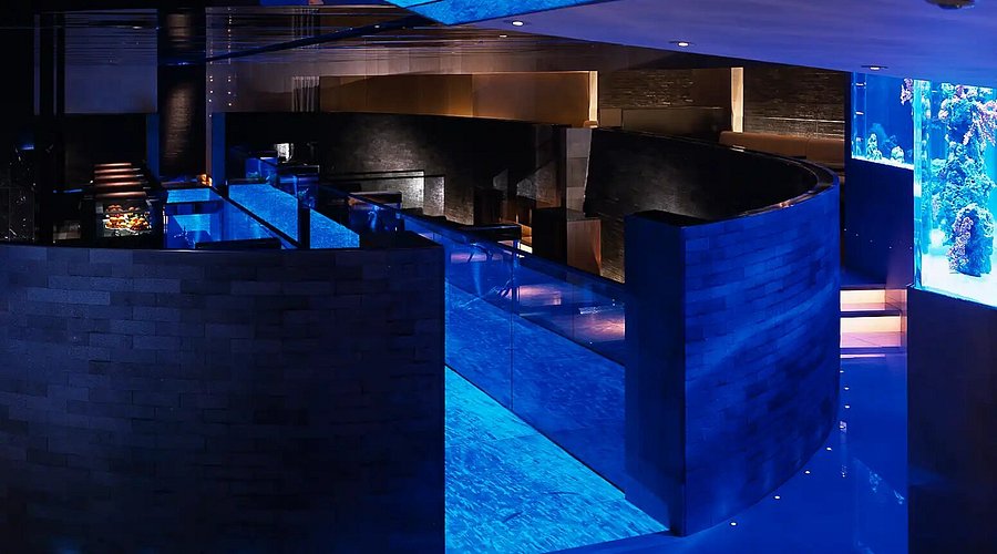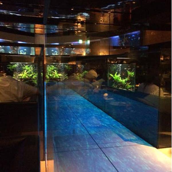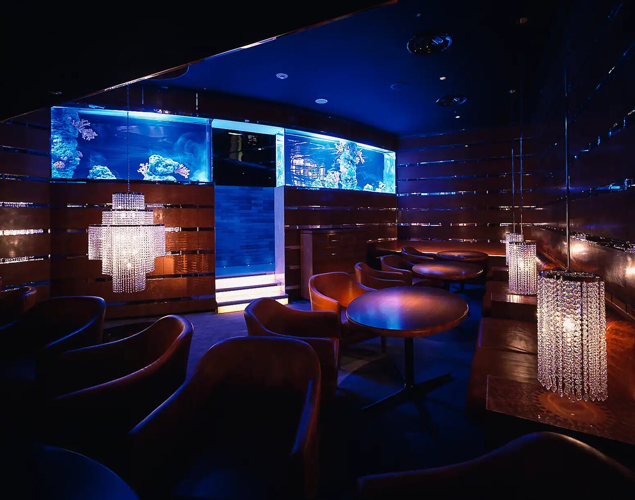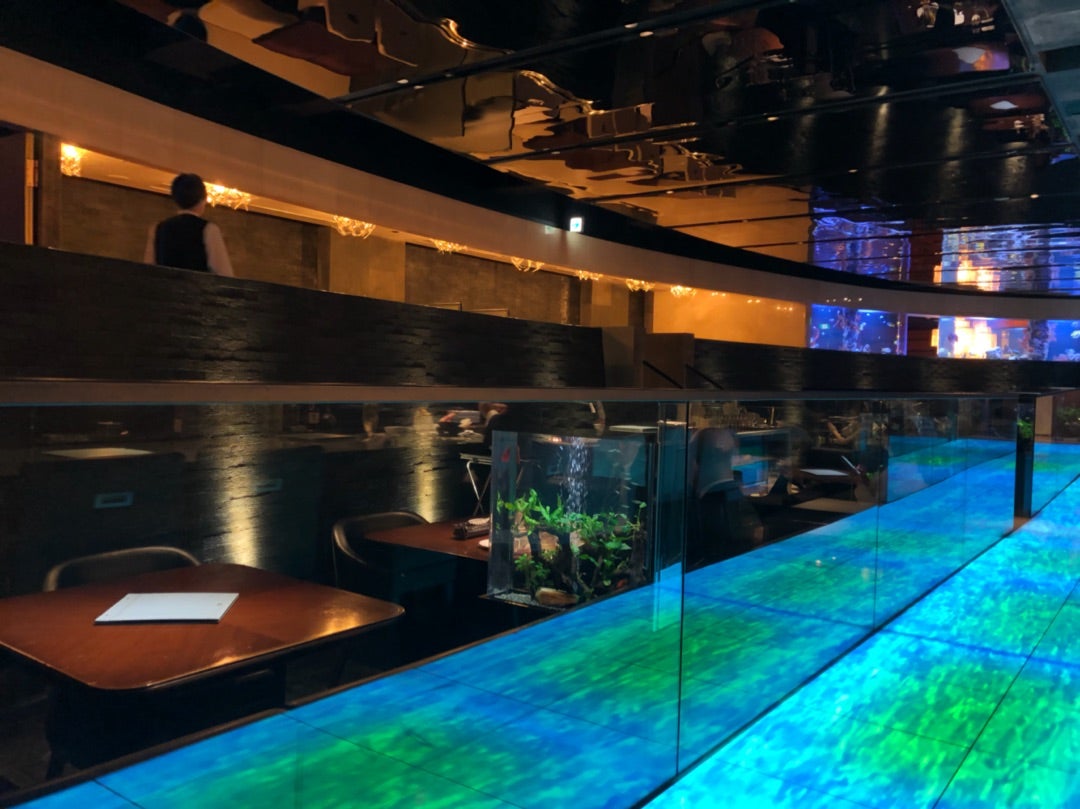 他の投稿も見る▶@minatoku_torisetsu銀座7丁目の好立地にある「銀座水響亭」さん。地下に続く階段を抜けるとブルー一色の空間が広がる。店内には、大小様々な水槽にお魚が泳いでおり、海の中に来たような雰囲気を味わえる。壁や、ガラスの床の下にも水が流れており、ロマンチックな空間はデートにぴったり。相棒のロケ地としても知られており、全国からファンが訪れているそう。。
