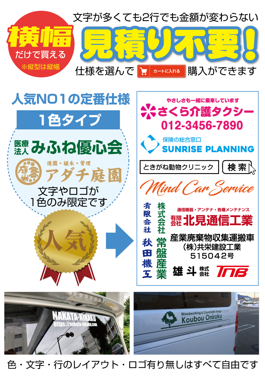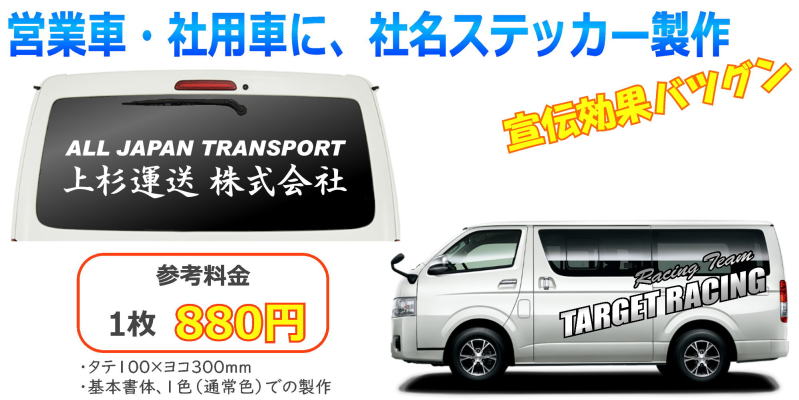 営業車、社用車、社名ステッカー製作 社名の入った車は動く看板、宣伝効果抜群。