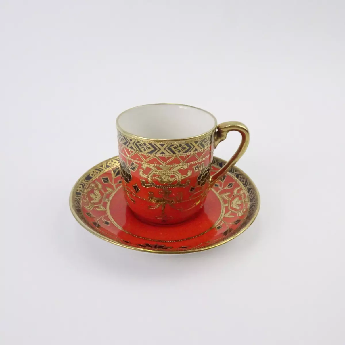 オールドノリタケ 日本陶器会社 金彩カップ・ソーサー 赤 オールドノリタケ デミタスカップ&ソーサー 幾何。