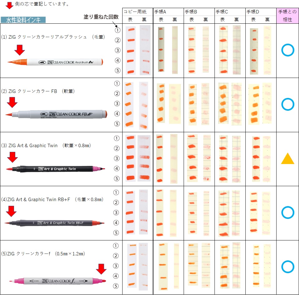 文具呉竹 ZIG クリーンカラードットの裏抜けチェック - 筆記具。