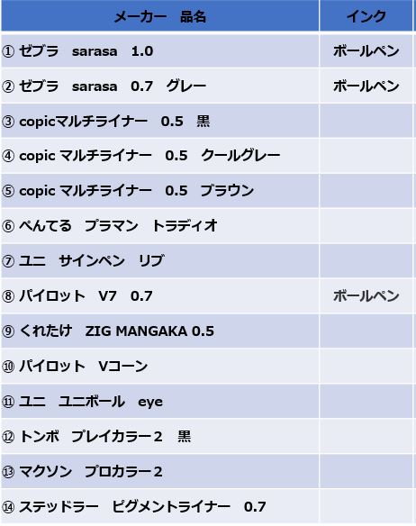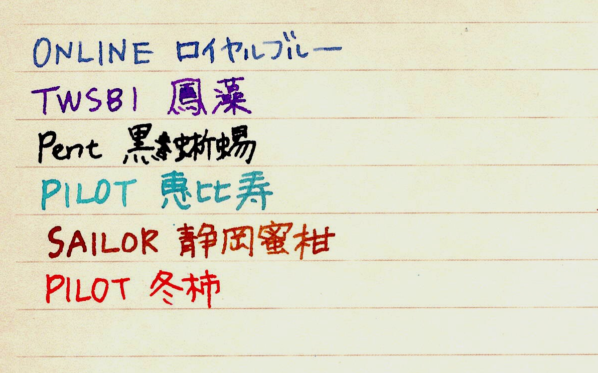 書きやすく裏写りしない文字用のペンはどれか?14本を比較。 ノートや手帳に色ペンと一緒に使う場合。 - アンビー英語教室。