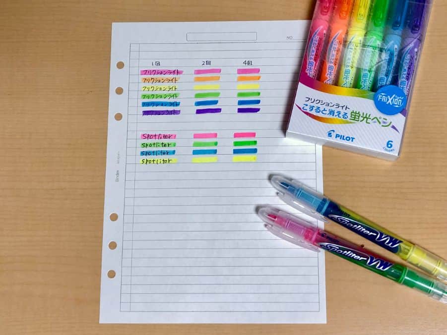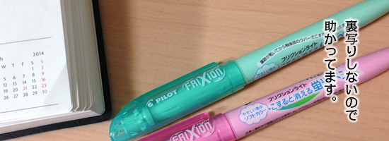 薄い紙でも裏写りしにくい蛍光ペン「フリクションライト」のソフトカラー。ぴらめこな生活。