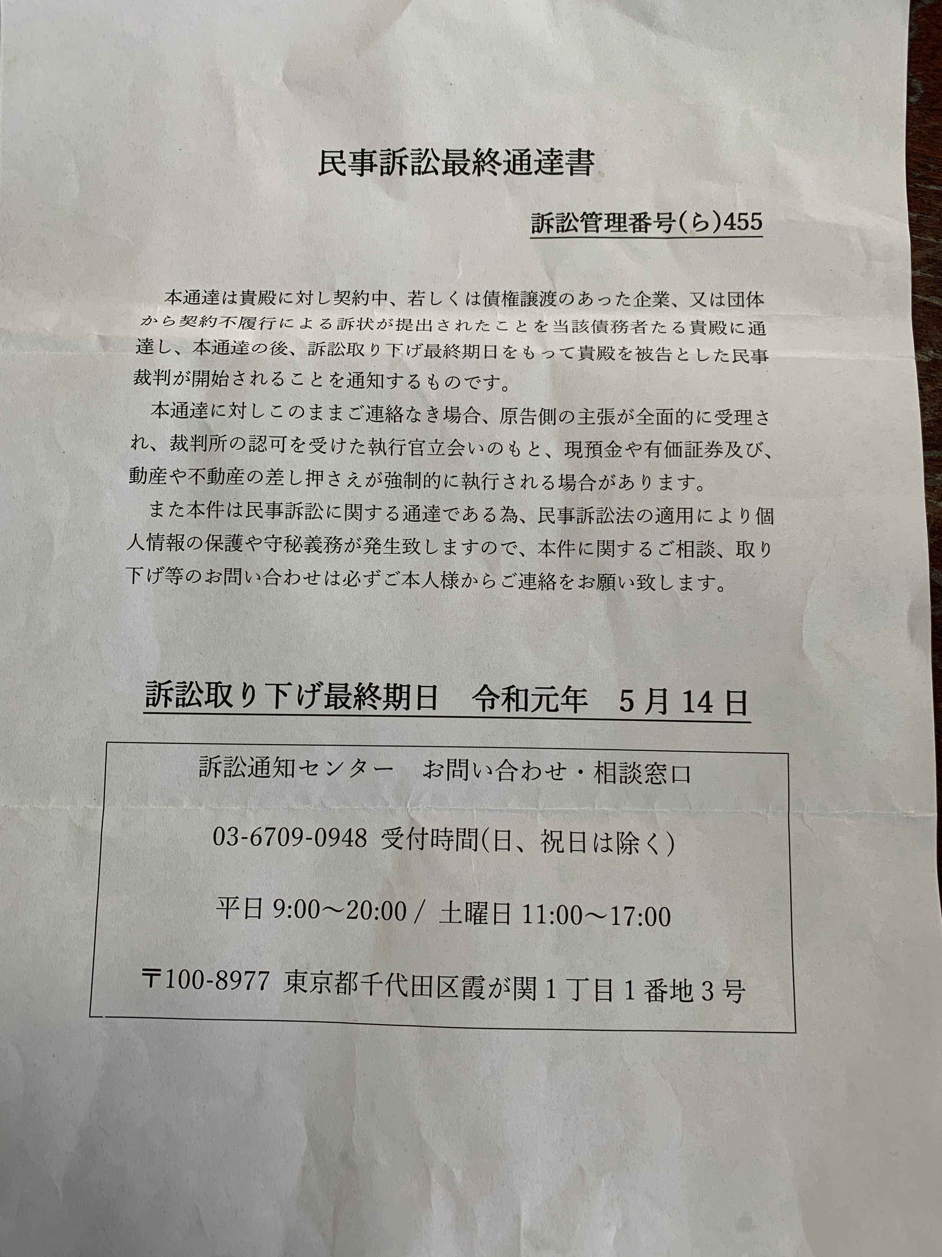 民事訴訟最終通達書」の封書・ハガキは無視しましょう。 : ブログ : 吉田あつし 武蔵村山市議会 議長。