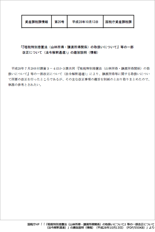山林所得・譲渡所得関係の通達改正の趣旨説明 国税庁サイトで公表税務情報。