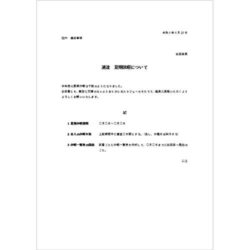 通達 夏期休暇についてビジネス文書 テンプレートプリントアウトファクトリーMyRICOH マイリコー。