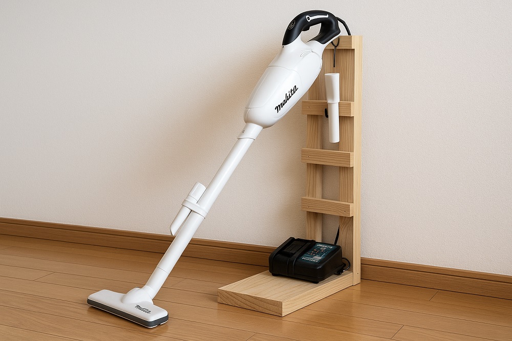 マキタ掃除機スタンドを自作してスッキリ収納!DIY初心者もできるアイデア集掃除機のとびら。