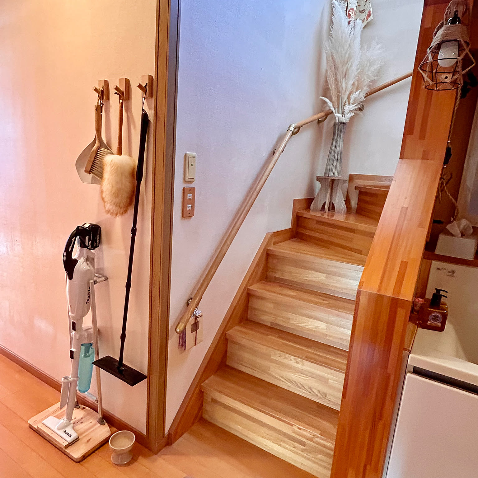 掃除機の収納アイデアを探る。100均無印フックにスタンドを活用。rooms19。