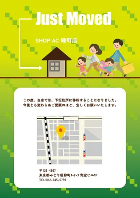 飲食店や事務所で使える「店舗移転のお知らせ」A4テンプレート・地図を入れたり編集を自由に イラストボックス「プレミアム」テンプレート。