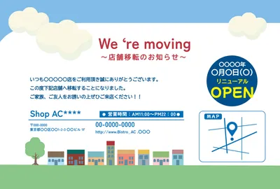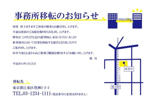 事務所移転のお知らせハガキデザインのご紹介集客チラシラボ。