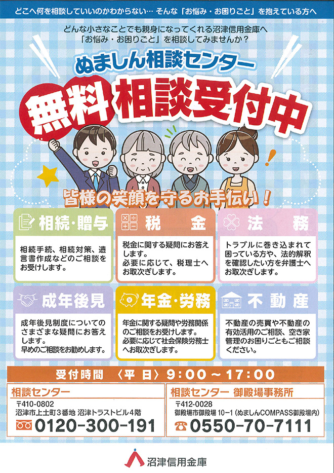 相談センター移転のお知らせ沼津信用金庫。