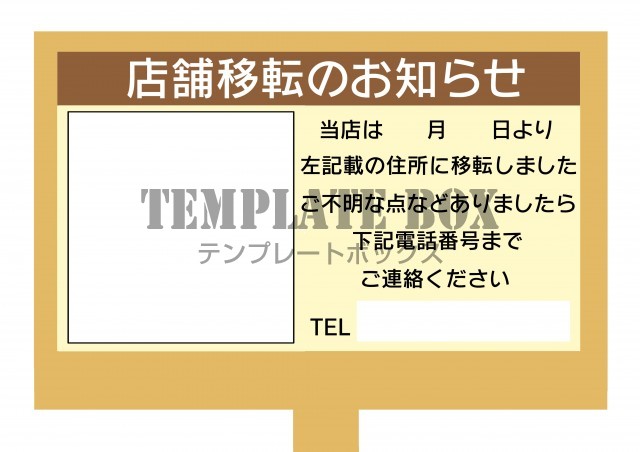店舗移転のお知らせ張り紙テンプレート・店舗移転・店・移転無料テンプレートTemplateBox。