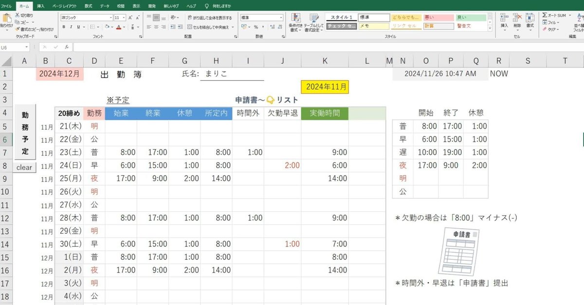 エクセルでつくる勤務表 テンプレートの作り方回リハPTの秘密基地。