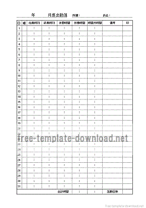 エクセル 出勤簿-縦1ヵ月版 テンプレート - エクセルフリー 無料ダウンロード。