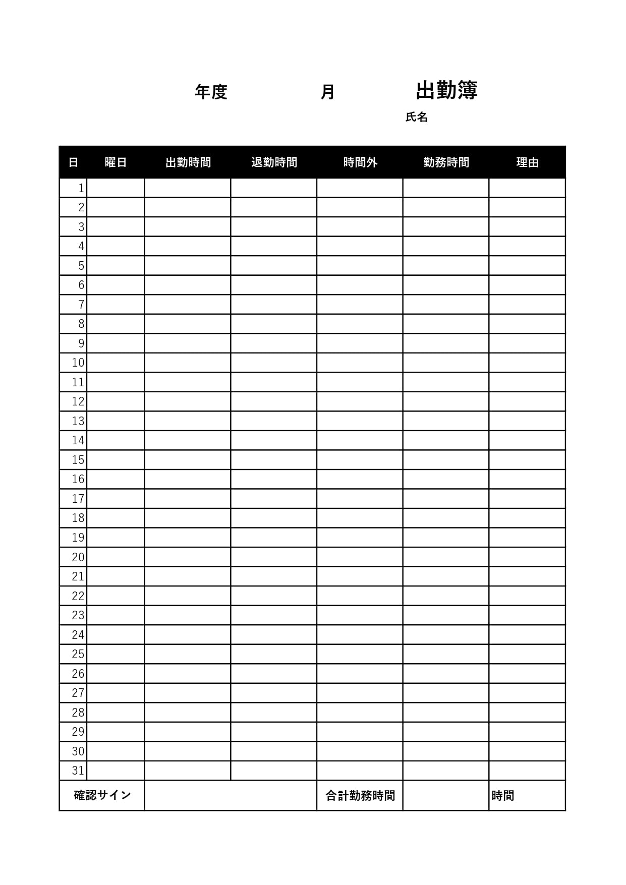 勤務状況を正確に記録できる出勤簿のテンプレート:ビジネス・シンプルTemplate-Digital。
